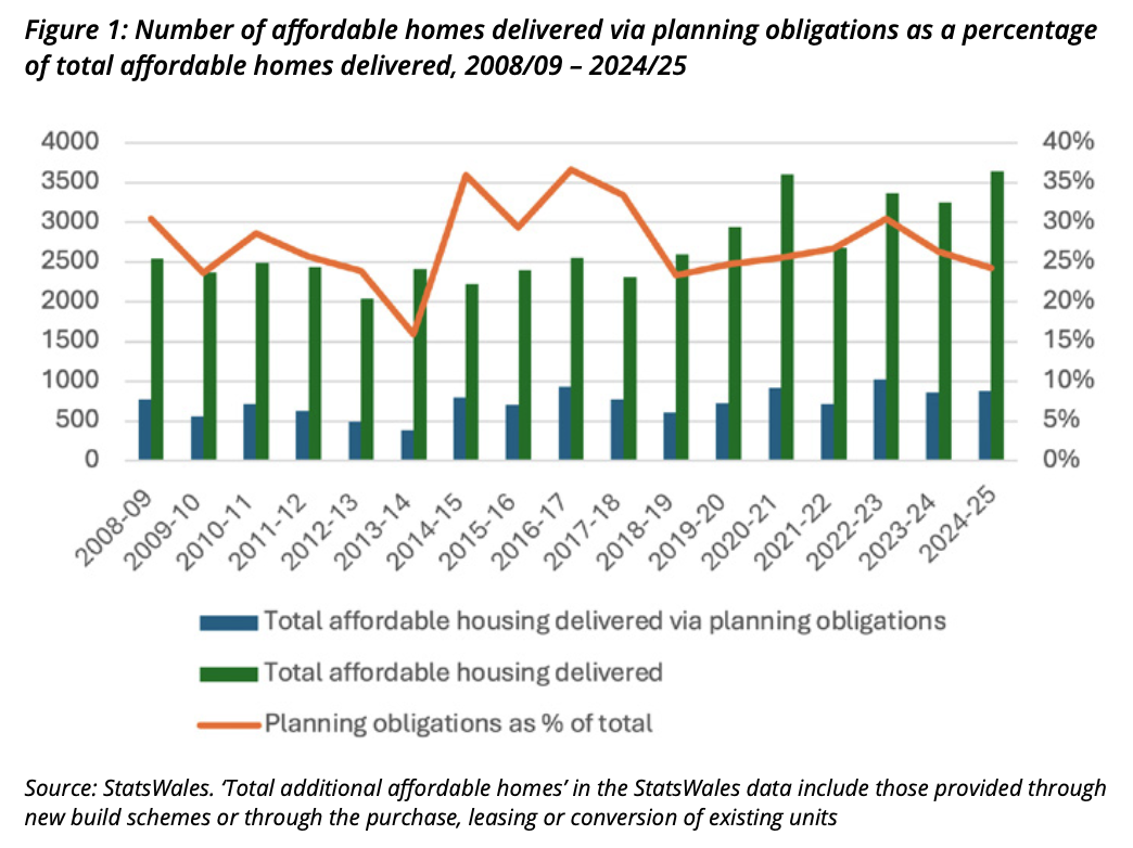 Given the sobering numbers in the Welsh Government’s latest estimates of official housing need, any new government formed following the May 2026 Senedd elections will inherit an enormous challenge. The latest estimates indicate that approximately 8,700 additional homes will be needed each year over the next Senedd parliament to June 2030 (with a 65/35 market/affordable tenure split). These numbers are in addition to the existing unmet need of 9,400 affordable homes. When compared to the 5,000 or so homes that StatsWales data suggest have been built on average each year since 2021, the scale of the challenge becomes painfully apparent.
